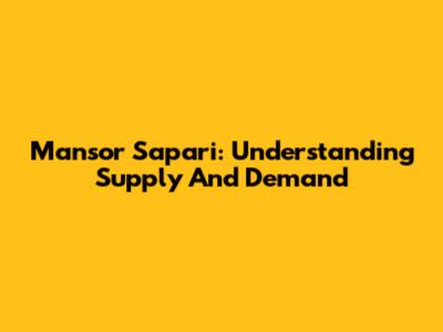 Mansor Sapari: Understanding Supply And Demand