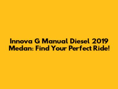 Hey guys! Are you currently in Medan and hunting for a reliable and fuel-efficient family car? Then you might want to consider the Innova G Manual Diesel 2019. This car is a popular choice for many good reasons. This article is your go-to guide, covering everything you need to know about snagging an Innova G Manual Diesel 2019 in Medan. We will explore the market conditions, key features, and what to look for when making your purchase.