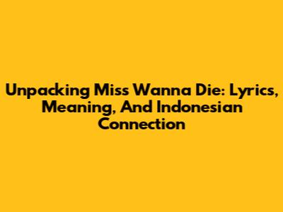 Unpacking 'Miss Wanna Die': Lyrics, Meaning, And Indonesian Connection