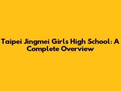 Taipei Jingmei Girls High School: A Complete Overview