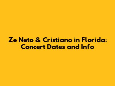Ze Neto & Cristiano: Florida Concert Dates & Info